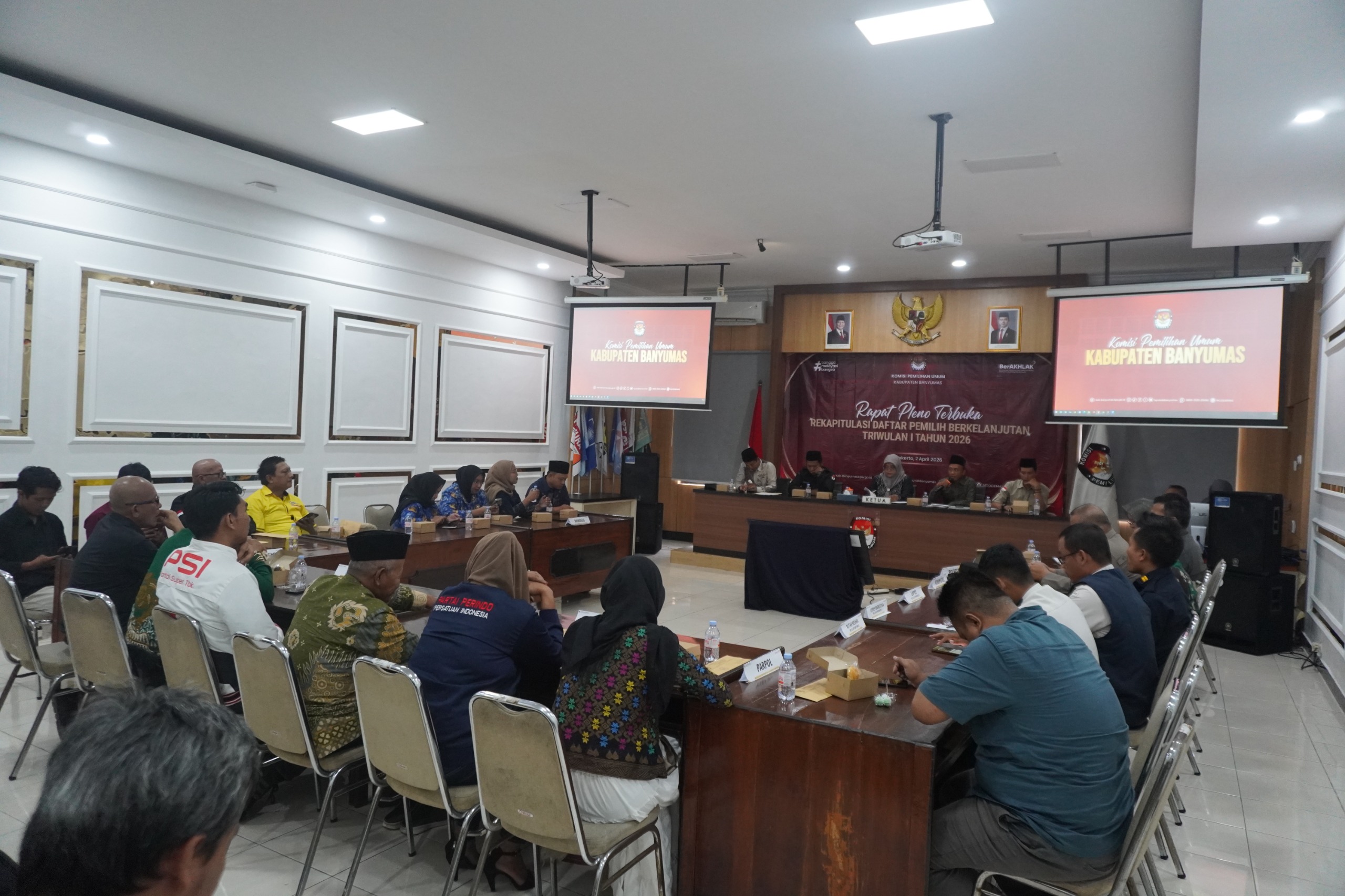 Suara Purwokerto - Komisi Pemilihan Umum (KPU) Kabupaten Banyumas melaksanakan Rapat Pleno Terbuka Rekapitulasi Pemutakhiran Data Pemilih Berkelanjutan (PDPB) Triwulan I Tahun 2026, Kamis (2/04/2026).